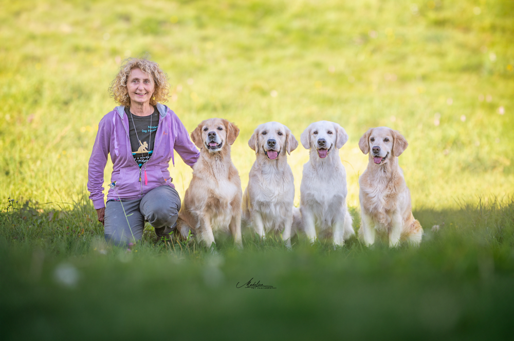 La mia linea di sangue dei miei golden è stata inizialmente selezionata da una straordinaria allevatrice Renate Küblböck, che ha fondato in Svizzera nel 1978 l'allevamento amatoriale del Golden Retriever "Von Axenfels", riconosciuto internazionalmente dalla F.C.I. (Federazione Cinologica